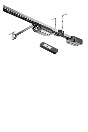 APERTO-automatik till den nya generationen med SOMloq2. Allt-i-ett (motor, styrenhet och belysning). Varje portöppnare levereras i ett komplett set i en kartong. I leverans ingår tredelad motorskena, motorvagn, takupphängning, monteringstillbehör, dragarm och portbeslag, samt förprogrammerad 2-kanalig fjärrkontroll Pearl Twin.